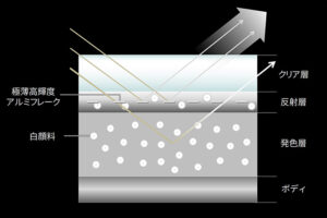 要は従来の3コートホワイトパールのパール層に大量のメタリックが