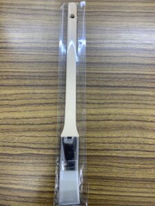 持つところの柄の部分が斜めになっている刷毛です。壁とか垂直面に対して塗装する時、刷毛と柄に角度がついてるから塗装しやすくなっています。