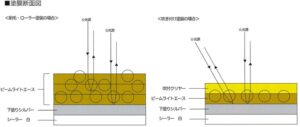 吹き付け塗装の場合は反射材が薄く均一に並ぶため、ローラー塗装に比べてさらに反射効果が優れる