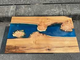 木のテーブルに川が流れているように見えますね。これがウッドリバーテーブルです。おしゃれですね。