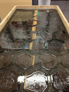 翌日は枠の上までレジンを流し込み固める作業をされていました。