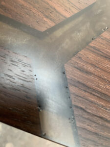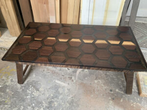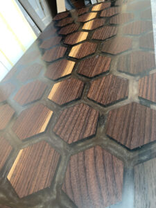 そして固まったらテーブルを#1200番のペーパーで磨きを行い、オイルステインのクリヤーを塗布しふき取り乾いたのがこちらになります。