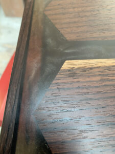 木のパーツが呼吸をしていたのか気泡が出ています。今回は木のパーツを先に塗装されていたのですがどうしても気泡だけは入りますね。それだけ木の生命力がすごいのでしょうか・・・